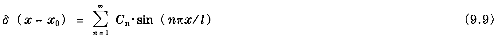 在式(9.7) 中,δ(x-x0) 是一個具有δ (0) = 1和δ (x≠0) =0特性迪拉克(Dirac)三角函數(shù)。應用已知的邊界條件,三角函數(shù)可以轉換成傅立葉級數(shù)