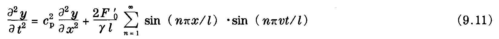 為描述當接觸線在受電弓以恒力F′0作用于接觸線上并按照一定速度v (圖9.2) 沿接觸線運行時的接觸線特性,可以把微分方程式 (9.4) 表示為