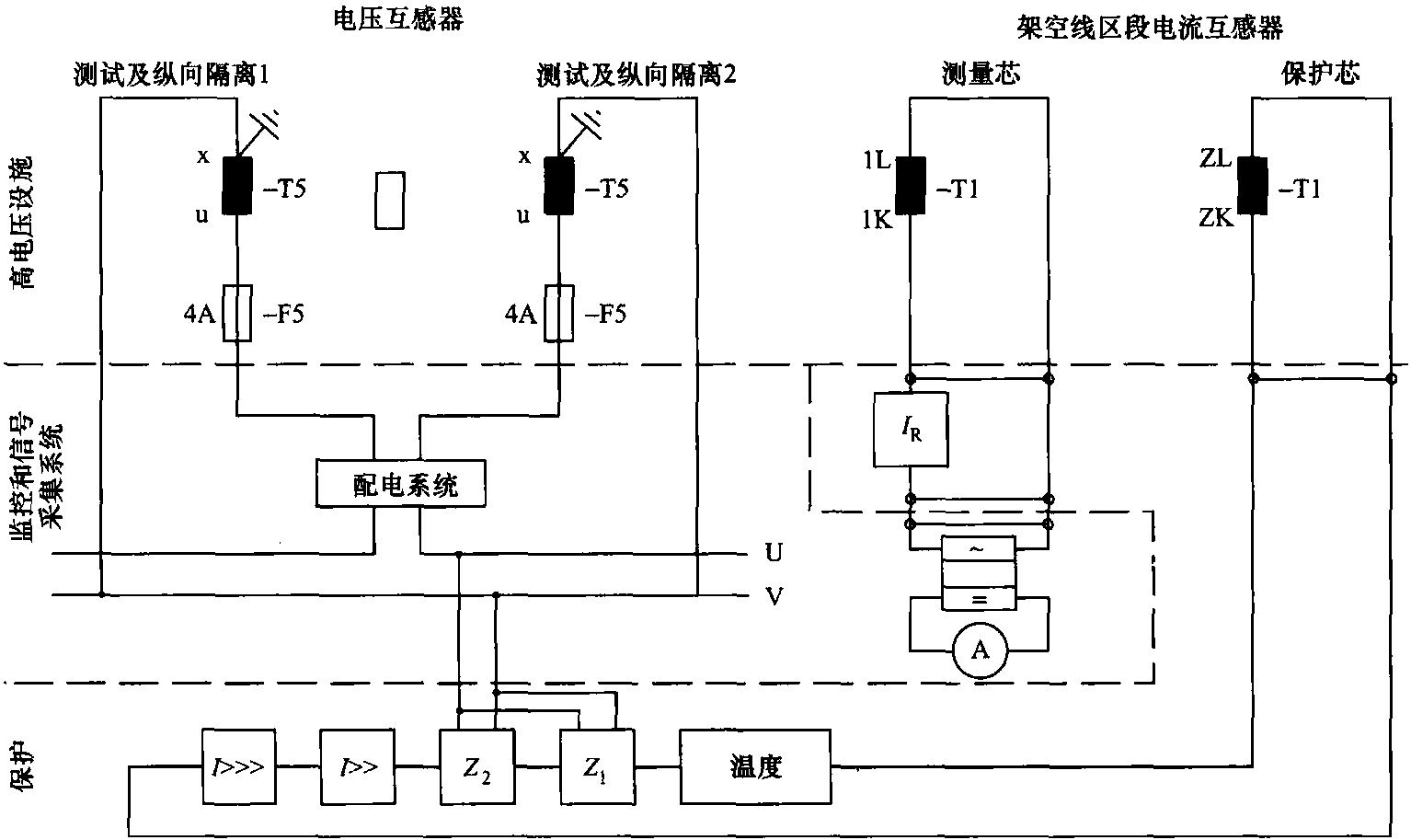 圖11.40 架空接觸網(wǎng)保護(hù)與電壓、電流互感器的連接
