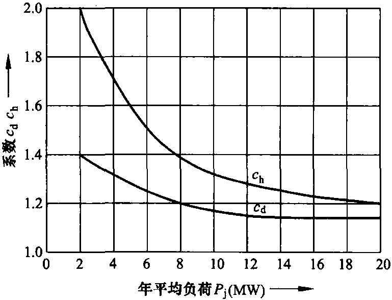圖11.2 如 [11.1] 中給出的那樣,日負(fù)荷系數(shù)cd和小時(shí)負(fù)荷系數(shù)ch為平均年負(fù)荷Pj的函數(shù)