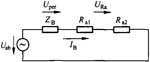 如果作用于赤裸的手足,可接近電壓才可能等于允許接觸電壓Uper(也就是說Uab/UTE=1)。實際上,無論如何,當(dāng)帶有較高電位的部件被接觸時形成的回路都包含附加電阻,如圖12.3所示。