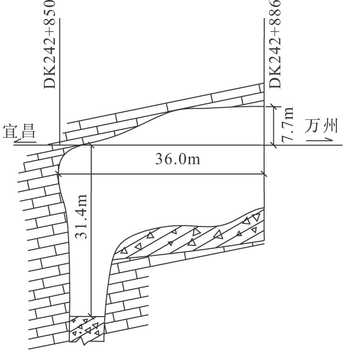 圖2-40云霧山隧軸溶腔縱剖面圖