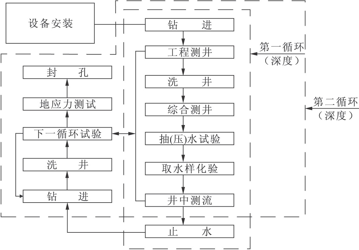 圖3-83施鉆與孔中綜合試驗(yàn)工作程序框圖