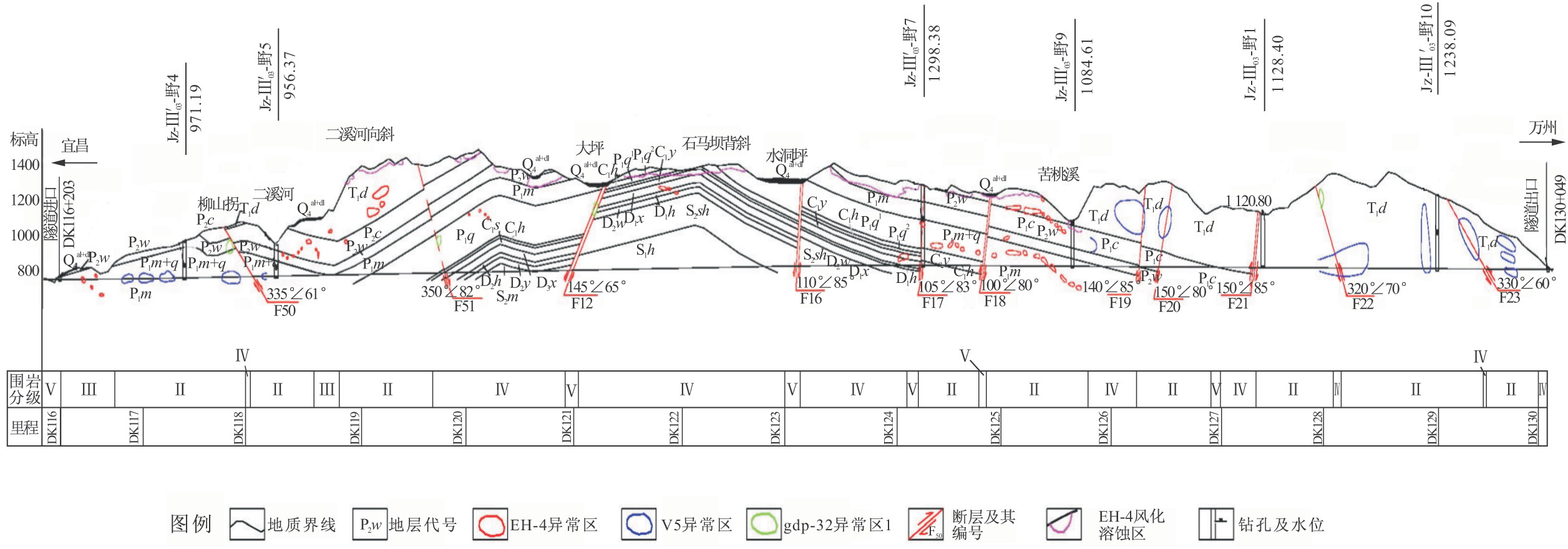圖3-125野三關(guān)隧道工程地質(zhì)縱斷面圖