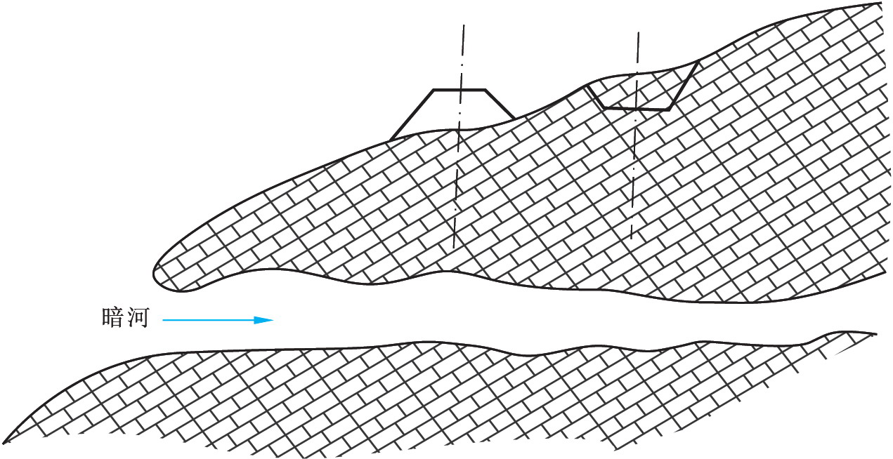 圖4-5線路標(biāo)高高于暗河標(biāo)高示意圖