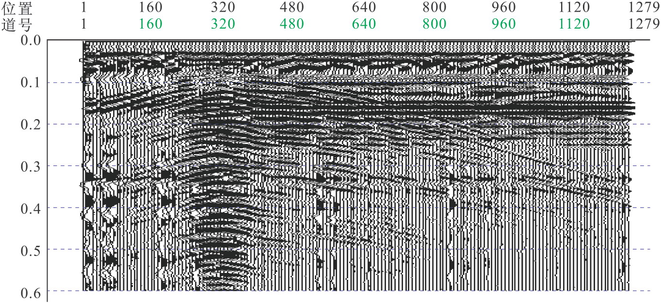 隧底雷達(dá)探測時,有些地段沒有鋪底,有些地段不太平整,采用連續(xù)采集方式,有時會在一定程度上影響數(shù)據(jù)質(zhì)量。測量過程中由于天線的晃動、轉(zhuǎn)向、停步及經(jīng)過鋪底與未鋪底地段的連接處,都會在淺部產(chǎn)生一些不規(guī)則的雷達(dá)圖像。因此,資料解釋中對一些不確切的雷達(dá)“異?!被蛎黠@由于淺部產(chǎn)生的“異?!?,應(yīng)在采集中注意記錄這種情況發(fā)生的位置及地表環(huán)境條件,以排除虛假異常。