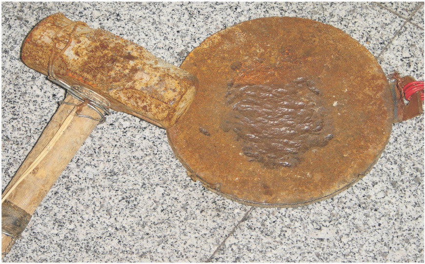 錘擊震源因其經(jīng)濟(jì)、簡(jiǎn)便、數(shù)據(jù)采集效率高而廣泛應(yīng)用于淺層工程常規(guī)地震勘探中,如圖5-2所示,該系統(tǒng)由大錘、金屬墊板、錘擊開(kāi)關(guān)和連接電纜組成。在潮濕、牢固和堅(jiān)硬的地層上使用激發(fā)效果較好,獲得的信號(hào)頻率較高,而在隧道中未鋪底、填筑碎石碴較多、開(kāi)挖干燥疏松的地表層上激發(fā)效果較差。