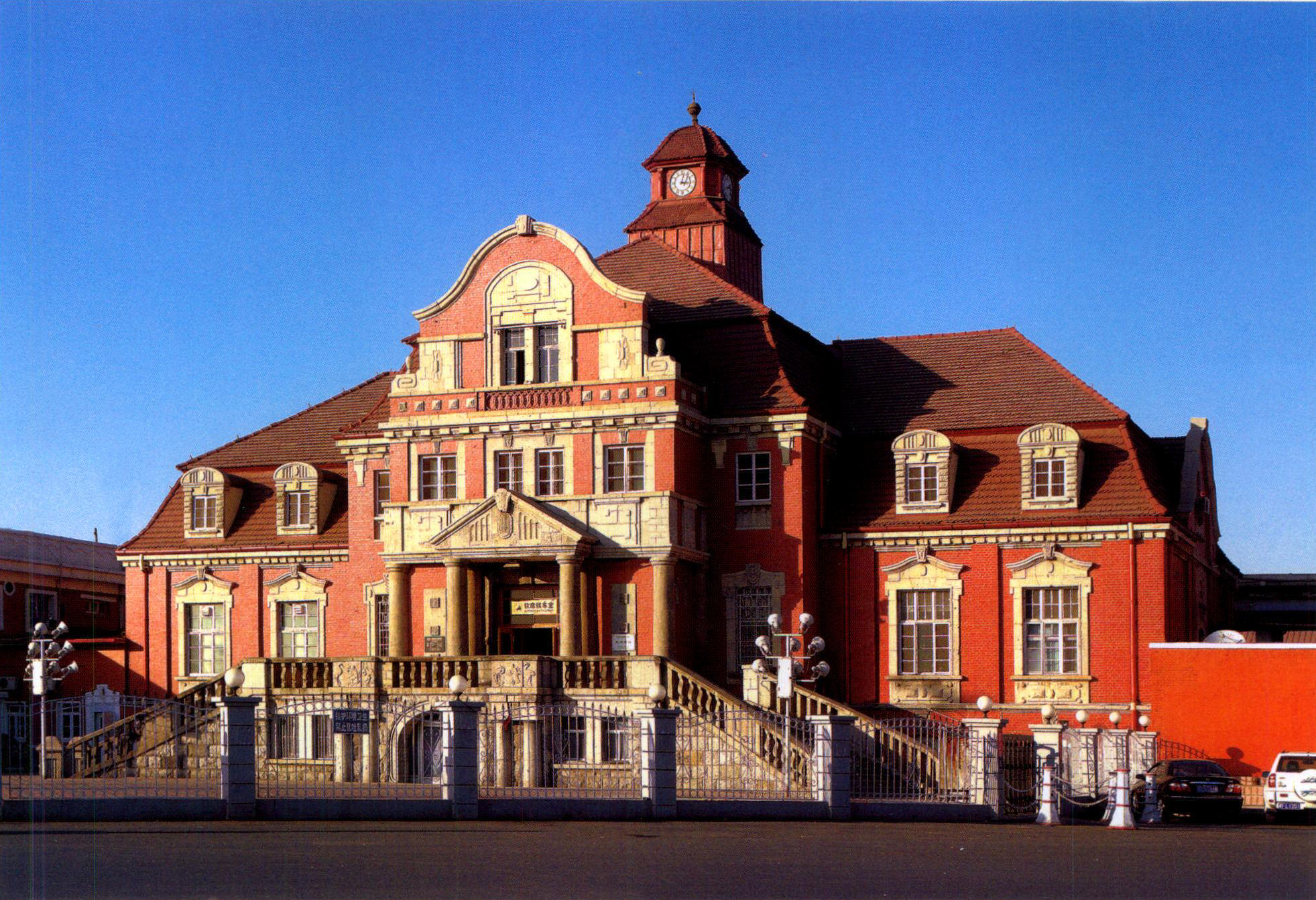 天津西站位于現(xiàn)紅橋區(qū)西站前街,建于1908-1910年,與中國第 一條南北大動(dòng)脈津浦鐵路北段工 程同期建設(shè),成為繼天津東站、北站之后的第三大火車站。西站主樓為磚混結(jié)構(gòu)的三層樓房,帶半地 下室,建筑面積1900平方米,為典型的德國建筑特色。大樓坐北朝南,正立面中部前突,呈凸字形。 入口門廊立面間置四根圓形立柱,兩側(cè)階梯走道,瓶式護(hù)欄,均為青石構(gòu)筑。樓內(nèi)門廳與圓形候車大 廳相連。大樓墻體以紅磚砌筑。長方形窗,窗套上口有人字形或連弧線腳花飾。多坡房頂,牛舌形瓦。 中部筑方形二層塔樓,設(shè)老虎窗。該樓外觀整體呈巴洛克建筑風(fēng)格,具有德國中古時(shí)代的別墅風(fēng)貌。 樓內(nèi)有候車大廳和各種輔助房間,設(shè)施完善,寬敞明亮,裝修豪華典雅。