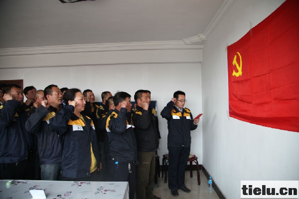 近日,京包線集中修將全面展開,呼和浩特工務(wù)機(jī)械段組織黨員干部開展了“重溫入黨誓詞,向黨旗宣誓”活動(dòng),激勵(lì)黨員干部全力做好集中修施工的帶頭作用,確保各項(xiàng)施工順利進(jìn)行。圖為該段黨員在施工駐地宣誓(通訊員:朱杰攝影報(bào)道)