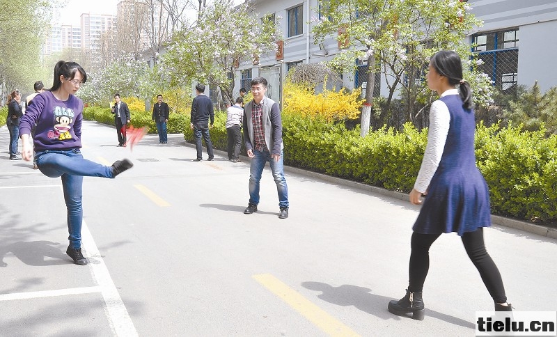 圖為毽球運動在太原機(jī)務(wù)段受到廣泛歡迎。