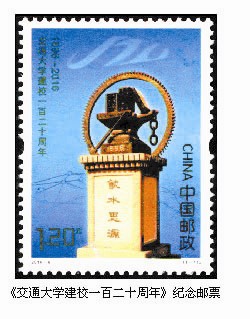 4月8日,我國(guó)郵政部門發(fā)行《交通大學(xué)建校一百二十周年》紀(jì)念郵票,全套1枚,面值1.20元。