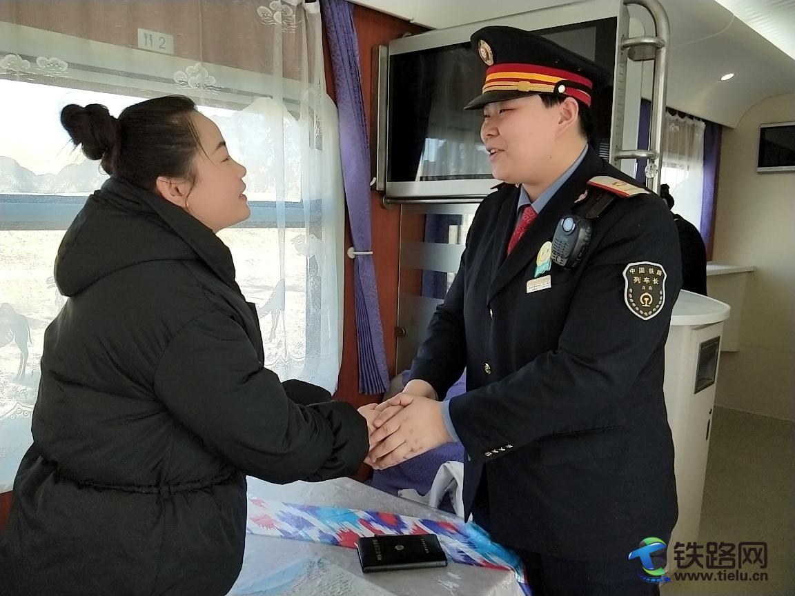 經(jīng)過了解得知旅客是10號車廂22號上鋪的黨穎女士,從北京上車到武威回家過年的,早上起床打開箱子發(fā)現(xiàn)里面的物品不是自己的,才意識到是同格和自己拿一樣箱子21號中鋪的旅客下車時把自己的箱子和她的箱子拿錯了。黨穎女士非常著急的說:“箱子里除了裝有自己換洗衣服,還有一些證件之類的,這高高興興回家過年,這可咋整啊1王靖一邊安撫旅客不要著急,一邊開始查找21號中鋪臨河下車旅客的信息,通過多方面的努力,誤拿錯箱子的主人找到了,王靖車長把編好的客運記錄連帶箱子交給了中衛(wèi)站的工作人員帶回臨河,而黨穎女士的箱子也會由臨河站以最快的列車帶回武威站,并給雙方都留下了聯(lián)系方式。當(dāng)王靖車長告訴黨穎女士這一好消息的時候,黨女士拉著王車長手說:“你們真的太棒了,非常感謝,我都快急死了,真沒想到你們這么快就給我找回來了!蓖踯囬L笑著說:“這是我們應(yīng)該做的,遇到旅客疏忽大意丟失,拿錯物品時,列車工作人員,都會第一時間伸出援手,千方百計幫助找回物品,確保旅客平安,順利出行”。