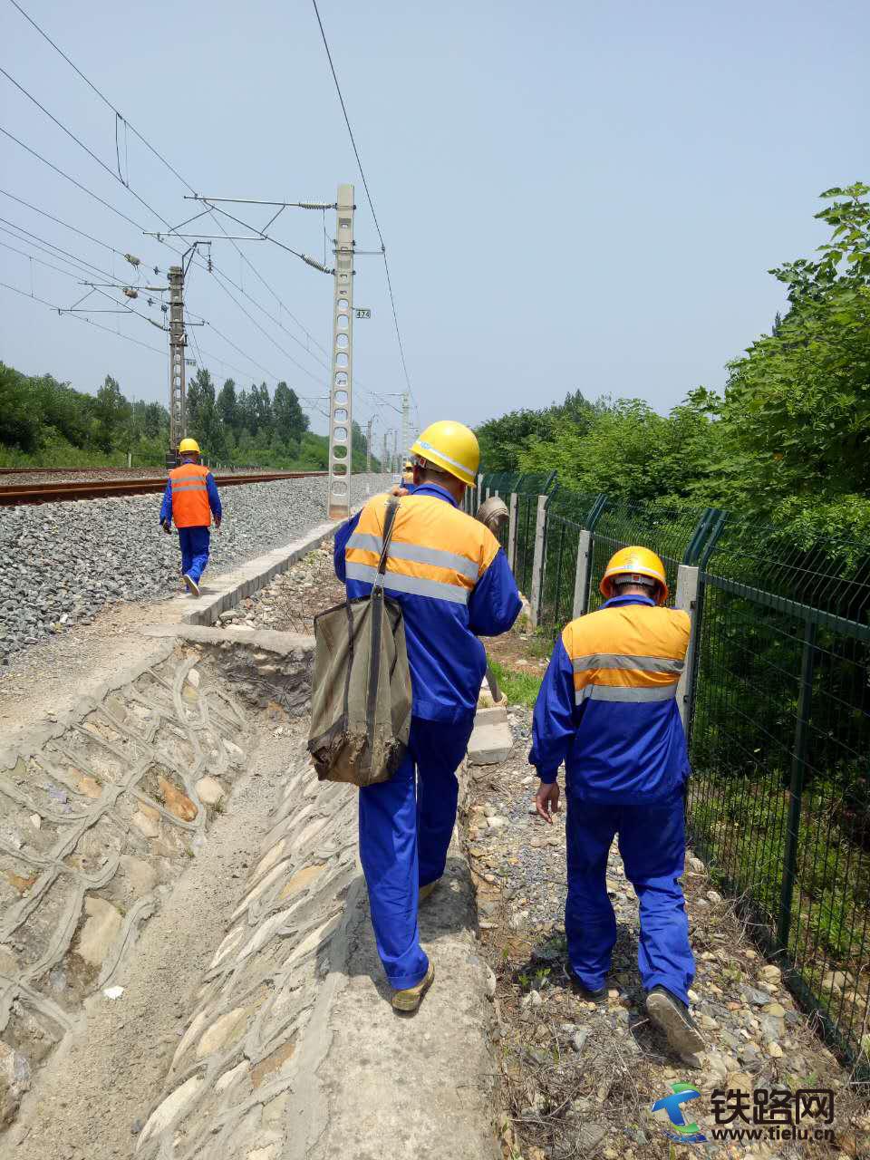 由于鐵路行業(yè)的特殊性,接觸網(wǎng)設(shè)備大都在室外,長時(shí)間炙熱暴曬給設(shè)備安全、施工安全帶來巨大壓力,為防止接觸網(wǎng)設(shè)備在高溫下“中暑”,洛陽供電段西峽供電車間領(lǐng)導(dǎo)班子深入包保班組,動(dòng)員職工精檢細(xì)修,加強(qiáng)設(shè)備巡視、監(jiān)測和維修。他們熟練的運(yùn)用自己的工具,調(diào)整馳度,檢查調(diào)整補(bǔ)償裝置、滑輪等。站在兩根鋼軌中間放眼望去,太陽曬的軌道散發(fā)出陣陣熱浪,為了設(shè)備運(yùn)行的正常,鐵路運(yùn)輸?shù)臅惩,他們毅然?jiān)守在自己的崗位上。每次作業(yè)結(jié)束,摘下安全帽,汗水就像剛洗過頭一樣從頭發(fā)上滴下來,工作服也能毫不費(fèi)勁的擰出水。