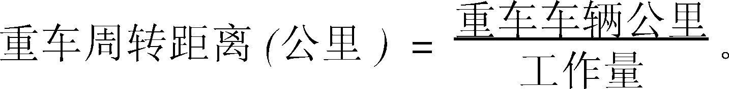 簡稱“重周距”。貨車每周轉一次在重車狀態(tài)下的平均運行距離。其計算公式為: