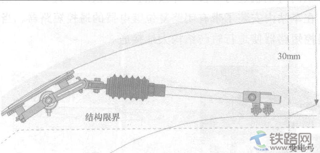 香港地鐵 (MTRC) 是一現(xiàn)代化的地下鐵道系統(tǒng),它構(gòu)成了香港大都市城市軌道交通運(yùn)輸?shù)臉屑~。香港地鐵運(yùn)營網(wǎng)絡(luò)是由若干DC 1500V供電線路組成,線路主要在隧道內(nèi)運(yùn)行。在Kwun-Tong線路上因?yàn)榫匦魏蛨A形隧道的洞頂高度過低無法安裝承力索就采用彈性支架承載兩根CuAg AC-120型接觸線 (圖4.85),其補(bǔ)償張力為24kN。