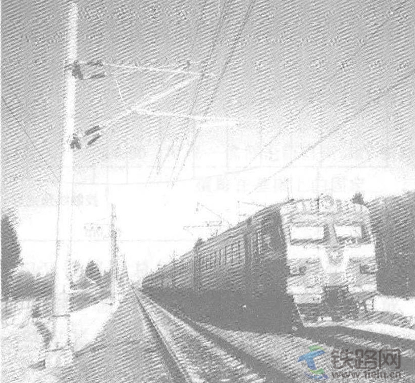 十月鐵路公司(OEB) 負(fù)責(zé)運營莫斯科—圣彼得堡線路,其電壓為3kV,時速最大為200km。這條線路是俄羅斯使用最多的鐵路線之一。圖4.91的左圖為改建前的腕臂布置圖。懸式絕緣子把承力索連接到由角鋼組成的腕臂上,兩只定位器以40mm的間隔引導(dǎo)接觸線。架空接觸網(wǎng)是為達到250km/h的最大速度而改建的,圖4.91的右圖是由西門子公司安裝的兩個接觸網(wǎng)區(qū)段的一種支持裝置,作為改建的一種選擇方案。該區(qū)段的質(zhì)量在運營期間已得到證明。區(qū)間腕臂主要裝在混凝土支柱上,支柱也架設(shè)電話線和信號線;