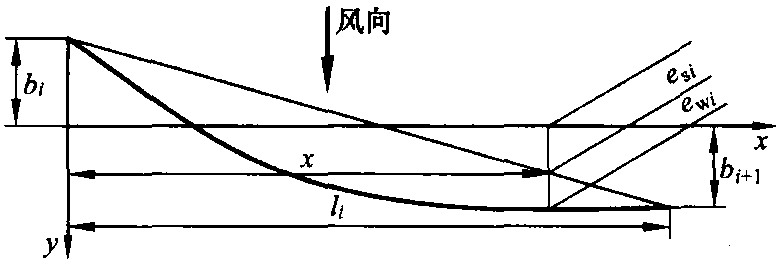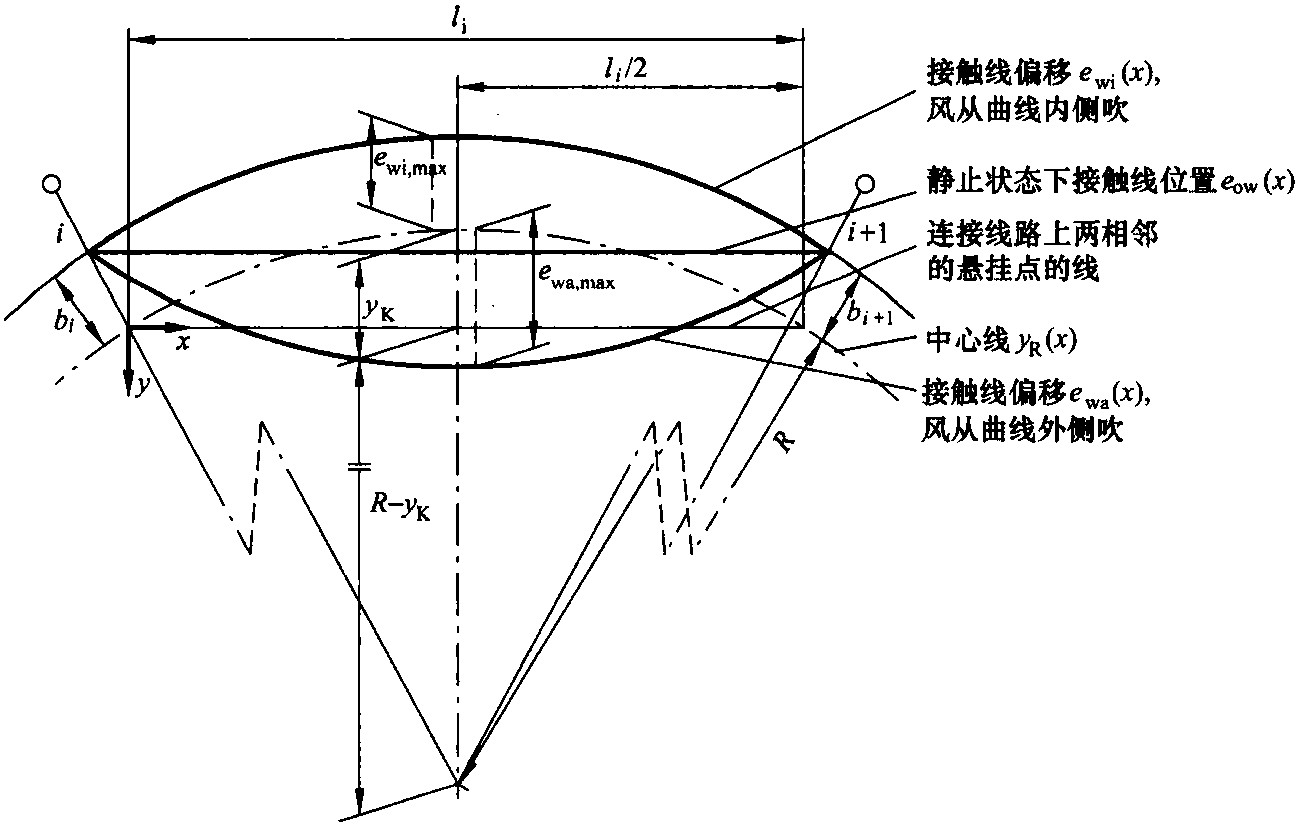 可按下式計算兩相鄰懸掛點(diǎn)i和i+1的連線距離線路中心線的位移絕對值yK
