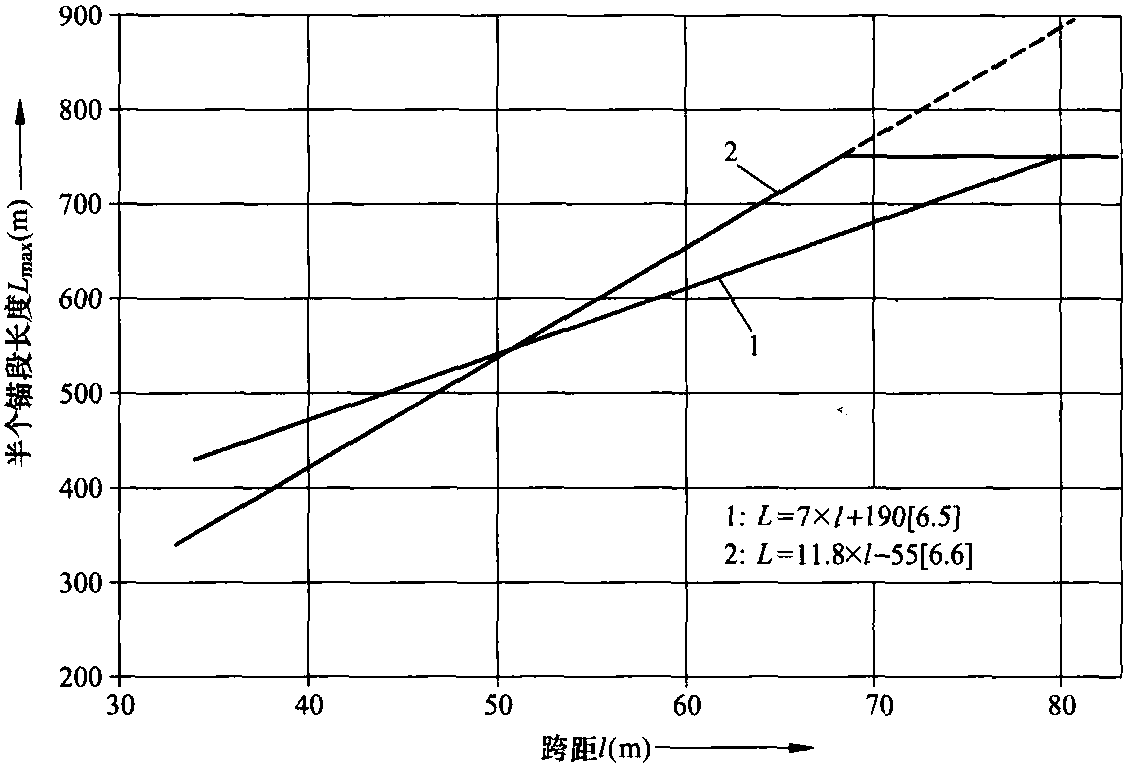 圖6.15 最大允許錨段長度和跨距之間的關(guān)系