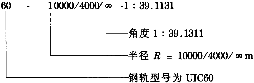 圖6.20 示出注解的可動心軌道岔的曲線度。