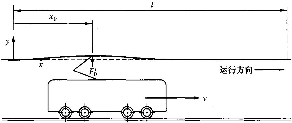 為描述當(dāng)接觸線在受電弓以恒力F′0作用于接觸線上并按照一定速度v (圖9.2) 沿接觸線運(yùn)行時(shí)的接觸線特性,可以把微分方程式 (9.4) 表示為