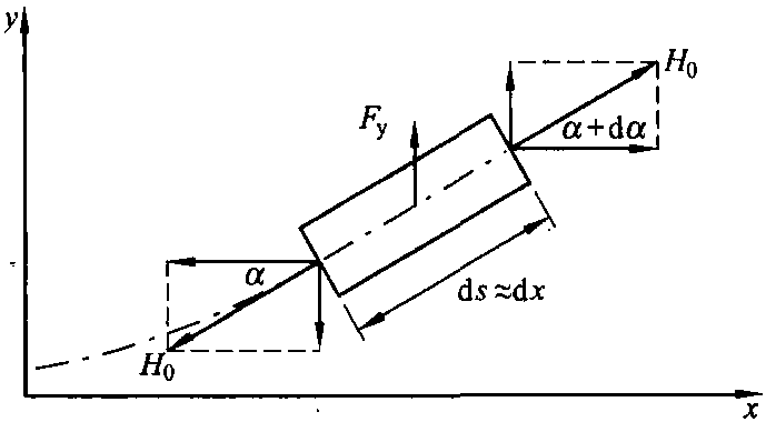 Fy=H0sin(α+dα) -H0sinα≈H0dα(9.1)