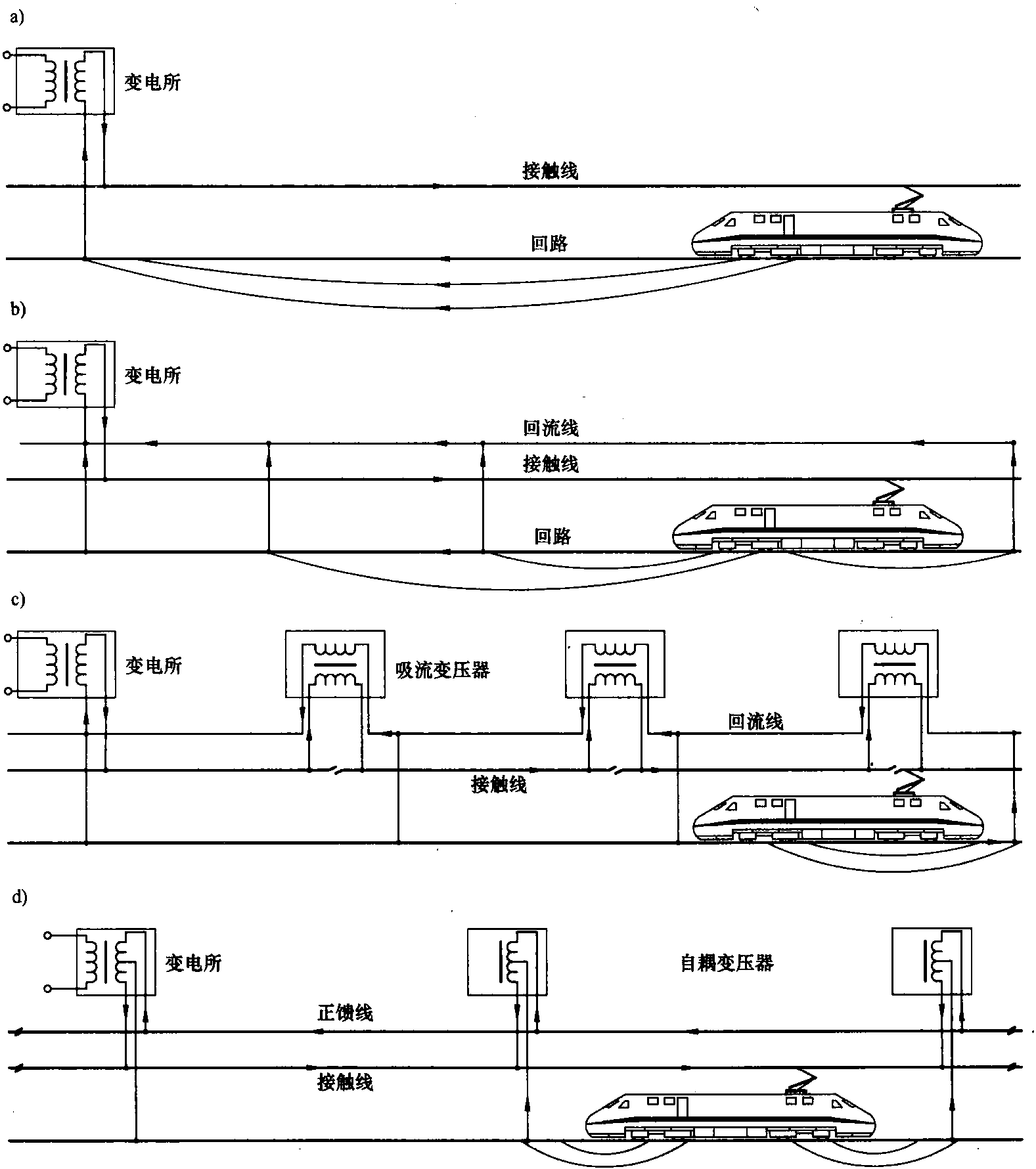 圖12.1 交流電氣化鐵道系統(tǒng)中的軌道回流