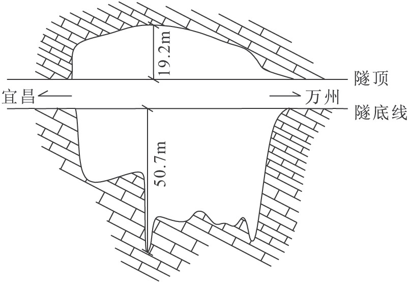 (3)上述兩洞穴溶腔應(yīng)是近代紙廠灣暗河、耗子洞暗河被棄置的管道腔體。由于地殼間歇性不斷上升,排泄基準(zhǔn)面不斷深切,管道流(暗河)隨之不斷下切并不斷保留被棄置的腔體及其原有堆積物(部分夾雜崩塌堆積物),即現(xiàn)時(shí)隧道遭遇的腔體及其堆積物。由于近代暗河下切及其保留的棄置腔體存在延續(xù)性,故棄置的腔體與近代暗河之間存在聯(lián)系、溝通。