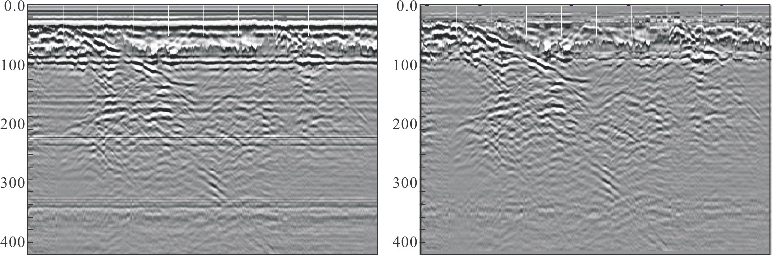 圖5-31榔坪3#隧道某段隧底地質(zhì)雷達背景去除前后圖像對比