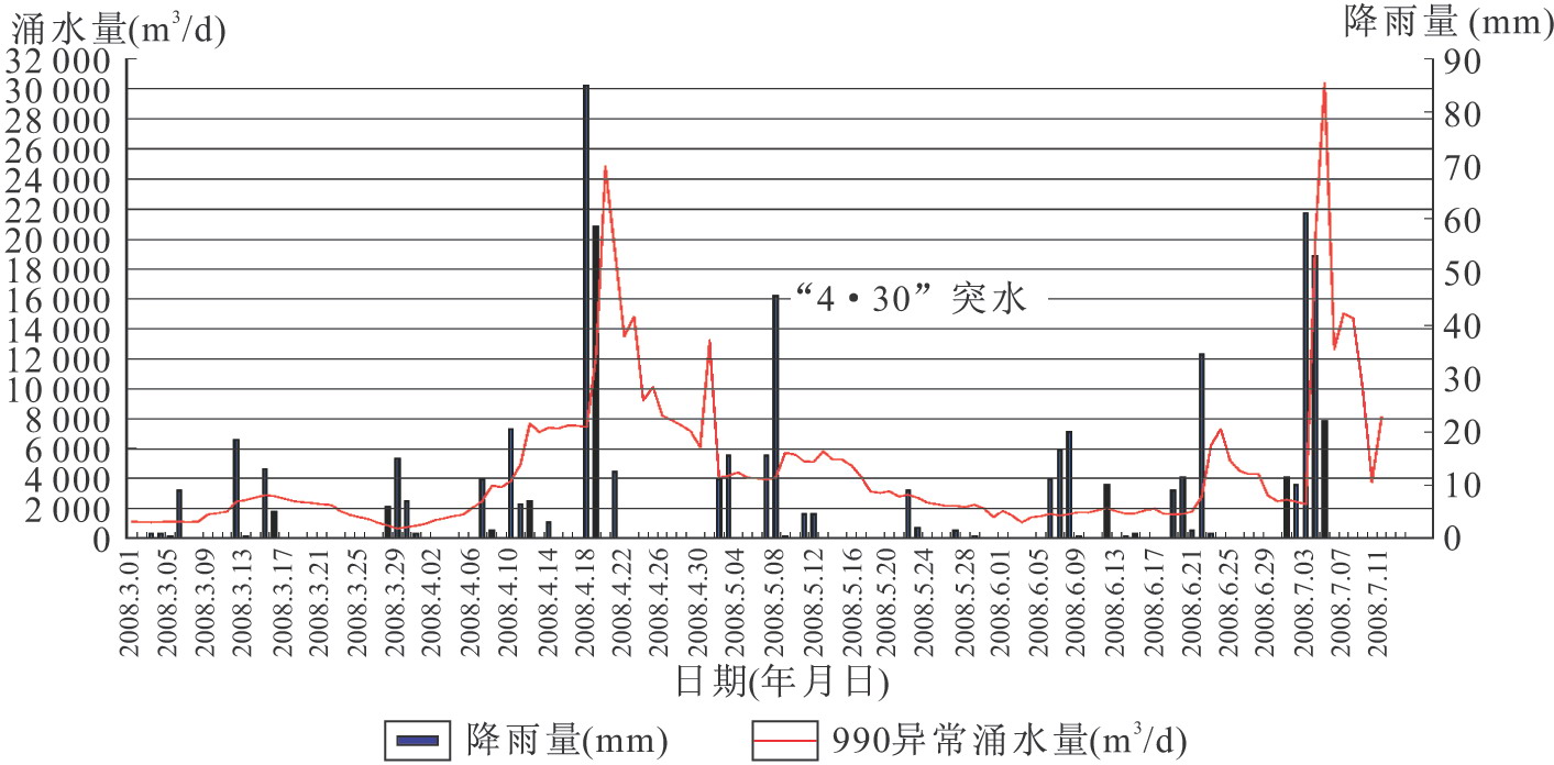 圖6-44涌水量、降雨量—時(shí)間關(guān)系曲線