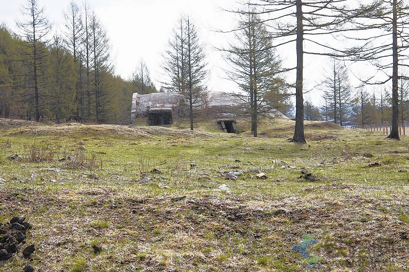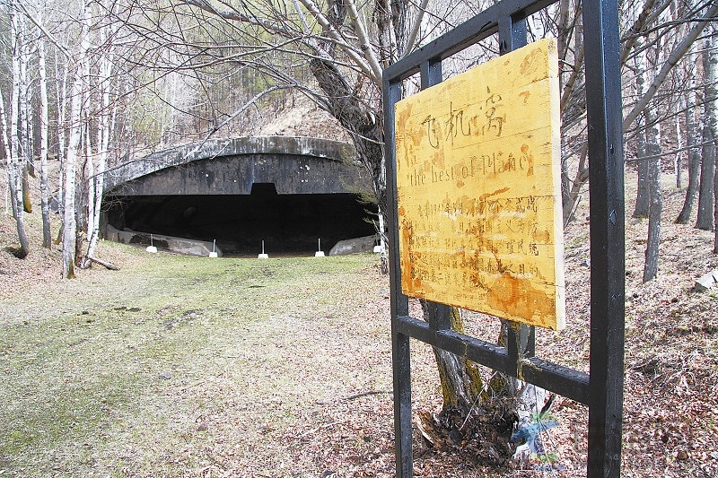 第二天忙完公事后,我又一次踏上了那條神秘的跑道,沿跑道走了幾百米,發(fā)現(xiàn)有一條通向不遠處山腳的岔路,拐上岔路幾十米后又是一條沿山根修建的、很平坦的沙石公路,沿著這條公路走了沒多遠,往山坡方向望去,透過層層白樺林,隱約可見一個黑乎乎的洞口,走近一看,是一個穹頂形建筑,盡管年代久遠,上面蓋滿了青苔,但還是能看出表面是混凝土質(zhì)地,洞口邊的牌子上寫著 “飛機窩”三個大字,下面詳細的說明是: “這個建筑是當年日軍 ‘零式’戰(zhàn)斗機的飛機庫,整體為鋼筋混凝土結(jié)構(gòu),建成于1942年5月,機庫口高6.5米、寬17.6米、縱深22.5米,頂端的梯形缺口方便飛機駕駛艙和尾翼出入,庫頂有長方形通風口一個,兩側(cè)有圓形洞口各一個,每個機庫面積約為200平方米。這樣的飛機庫沿著山腳而建,一共有18個,每個間距大約150米。這個軍事設(shè)施在當年的作用是防御蘇聯(lián)紅軍和加強對中國的殖民統(tǒng)治,達到長期霸占我國東北的目的!边@些像碉堡一樣各自獨立、隱藏在密林中的機庫,被叫做 “飛機窩”的確是非常形象生動。