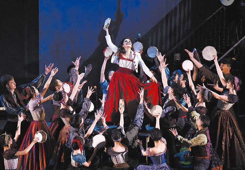2月27日,國家大劇院制作版歌劇 《卡門》繼續(xù)上演。歌劇 《卡門》是法國作曲家比才的傳世之作,講述了吉卜賽姑娘卡門追逐愛與自由的故事。國家大劇院制作版歌劇 《卡門》創(chuàng)排于2010年,在歷經(jīng)5輪熱演后,再度回歸大劇院舞臺。圖為飾演卡門的意大利女中音歌唱家朱賽皮娜·皮翁蒂 (中)在歌劇 《卡門》的演出中。 羅曉光 攝