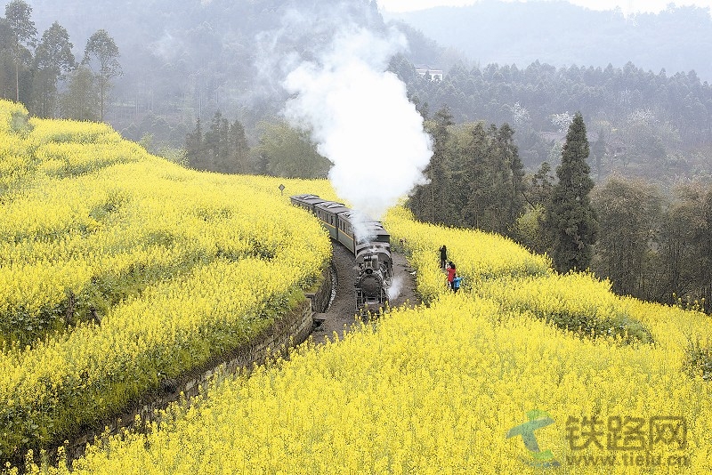 在四川省樂山市犍為縣,目前依然運(yùn)行著的老式窄軌蒸汽火車——嘉陽小火車迎來了旅游旺季。