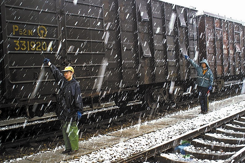 圖四:作業(yè)在風(fēng)雪中 李 蘭 攝