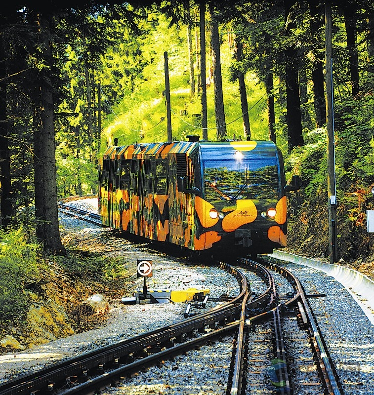 1897年,施內(nèi)山登山鐵路建成通車,僅用了兩年。當(dāng)年的登山鐵路分為兩段,第一段是從維也納至格拉茨鐵路干線上的維也納新城站出岔,以普通支線鐵路的方式通往山腳下的普赫伯格;第二段則是從普赫伯格開始用齒軌鐵路爬上山頂?shù)木路。后來,隨著鐵路的兼并重組,如今從維也納新城到普赫伯格間的支線鐵路已歸入奧地利國家鐵路網(wǎng),因此施內(nèi)山登山鐵路便更多地特指從普赫伯格到施內(nèi)山山頂?shù)倪@段登山線路了。