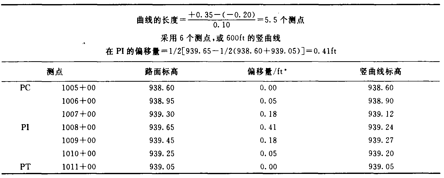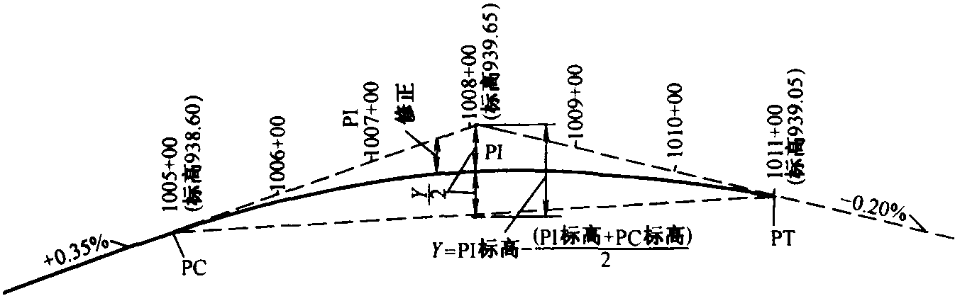 一般以這種方式確定的豎曲線的長度將不是一個偶數(shù)測點(diǎn),使用下一個偶數(shù)測點(diǎn)的豎曲線是更簡單且符合要求的。也就是,如果計算的長度是7.2個測點(diǎn),就使用8個測點(diǎn)的豎曲線。