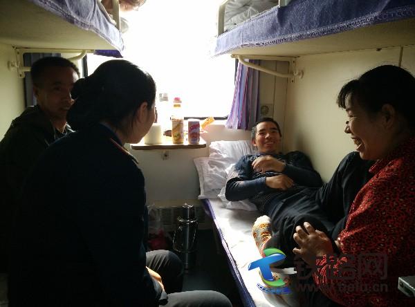 2016年3月6日,列車像以往一樣在鋼軌上飛馳著,突然對講機的急切匯報打斷了這份寧靜。“白車,白車,15號車廂有名旅客昏倒了,請通知廣播找醫(yī)生!毙〗M長何文玉著急地匯報著。列車長白莉云已最快的速度趕到了15號車廂探望生病旅客,并詢問旅客的情況,何文玉進行了簡單的匯報。這名旅客在18號下鋪乘坐,愛人在18號中鋪,從烏魯木齊乘車,目的地是長沙,據(jù)同行人說上車后因為身體不適一直都未進食,早晨上完衛(wèi)生間后就突然感覺到暈眩。白車長在詳細了解完之后,吩咐何文玉給旅客端來了白糖水,這名旅客在喝完后沒過一會兒臉色便恢復了紅潤。原來旅客因為長時間沒有進食,而出現(xiàn)了低血糖。之后的一天旅程里何文玉不時的訊問著旅客的身體情況,為旅客訂餐,扶旅客上廁所,陪他們嘮嘮家常,最終平安地將旅客送到了目的地。他們在下車時他愛人激動地說:“妹子,這路上謝謝你了,多虧了有你,有機會來長沙玩,姐姐一定帶你好好轉轉!焙挝挠裎⑿χf:“你們太客氣了,這都是應該做的,也歡迎你們在到新疆來玩!