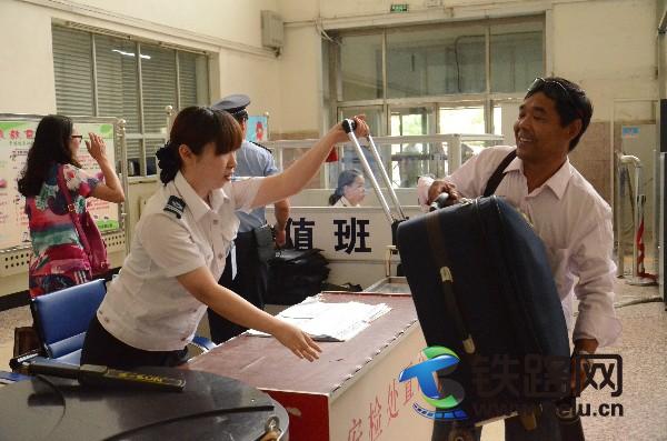 據(jù)統(tǒng)計,包頭東站平均每天發(fā)送旅客1萬多人,李丹平均每不到20秒就要完成一人的全身安檢,從上身到下身,從正面到背面,每檢查一名旅客都要蹲下、站起數(shù)次。每天彎腰、起身、揮手單調(diào)重復(fù)的動作要做好幾千次,可李丹始終一絲不茍的檢查每一位旅客。炎炎夏日,不到一小時,李丹的工作服就被汗水浸濕。面對繁重的工作,李丹早習(xí)以為常,可她面對的絕不僅僅是工作上的高強度,很多旅客對嚴格檢查、禁止其攜帶危險品乘車的抵觸情緒非常大,不理解、不配合,甚至是通過不理智的方式來發(fā)泄這種不良情緒。比如有的旅客說“我身上有炸彈,你能摸出來嗎?”,有的甚至說“你們摸來摸去手臟,別碰我”。為此,李丹自己琢磨出用微笑、文明用語加動作示意的工作方法緩解了旅客的抵觸情緒。每安檢一人她就需要說7個“請”字、10個“您”字,再忙再累也要使用禮貌用語,是這個最美“安檢天使”對自己的要求。