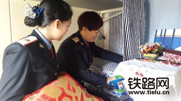 “宿營(yíng)車(chē)是一個(gè)班組的重點(diǎn)崗位,你們要有很強(qiáng)的接待意識(shí),要有眼色,干活要麻利,工作標(biāo)準(zhǔn)要比其他車(chē)廂高”;“宿營(yíng)車(chē)是乘務(wù)員休息的地方,除了要營(yíng)房化,還要把宿營(yíng)車(chē)布置的溫馨、舒適,讓乘務(wù)員感受到家的溫暖”。烏魯木齊鐵路局烏魯木齊客運(yùn)段北京三組的乘務(wù)員王麗榮一遍又一遍仔細(xì)叮囑著兩位徒弟,她恨不得把自己所有的工作經(jīng)驗(yàn)都傳授給她們。