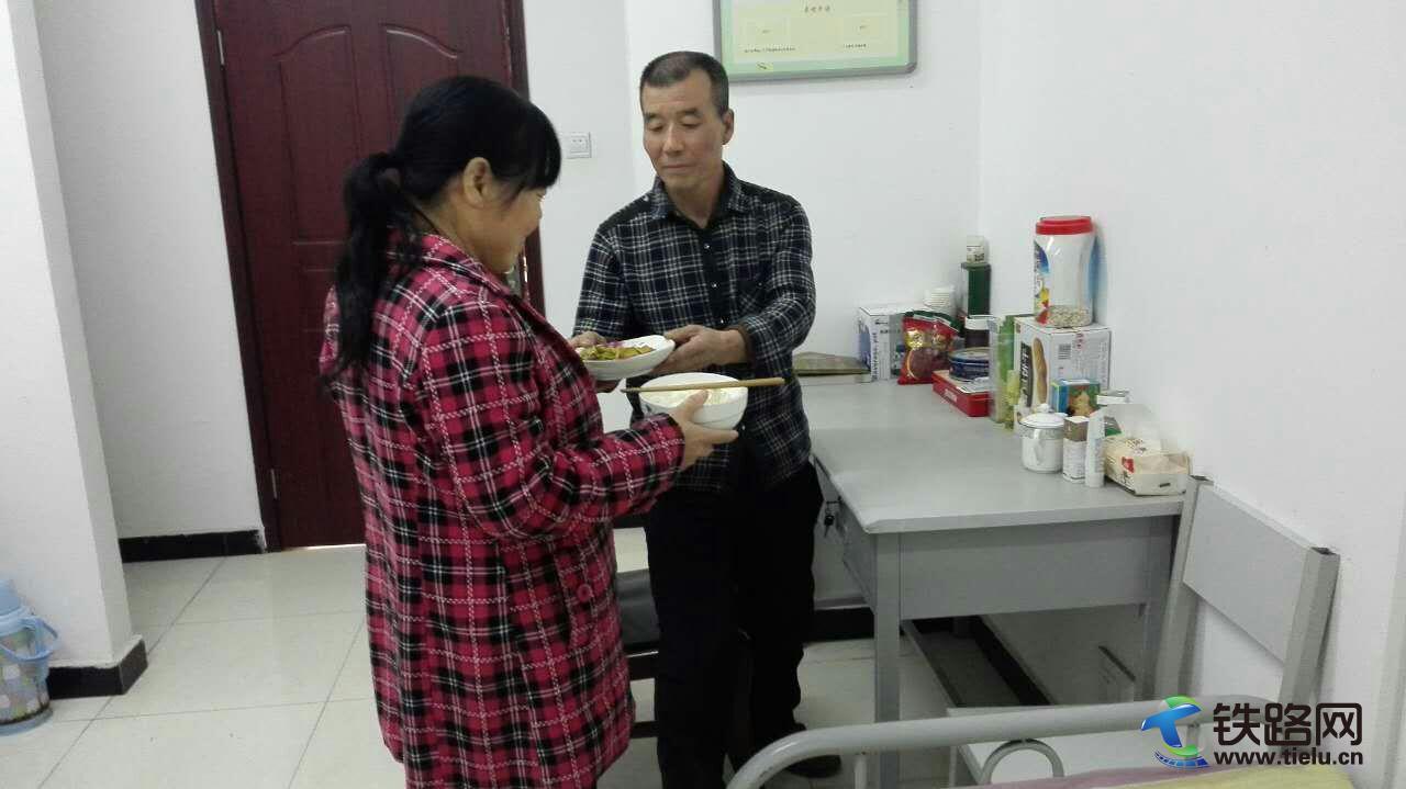 結(jié)束一天的繁忙工作后,回到宿舍賢惠的妻子給丈夫打好洗臉水,并遞上早已準備好的可口飯菜。
