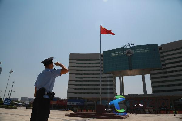 10月1日黃金周假期的第一天,這是個(gè)特殊的日子,是旅游出門的日子,走親訪友的開始,對(duì)陳大鵬來說,更是人生中最重要的一個(gè)轉(zhuǎn)折點(diǎn),因?yàn)樗麖男〉木靿?mèng),在北;疖囌咀兂闪爽F(xiàn)實(shí)。陳大鵬老家在山西呂梁,畢業(yè)于四川一所藝術(shù)學(xué)院,今年通過公務(wù)員考試,加入北海鐵路公安的隊(duì)伍,“對(duì)于一個(gè)學(xué)電視編導(dǎo)專業(yè)的人來說,能夠成為一名警察實(shí)現(xiàn)夢(mèng)想,自己是一個(gè)幸運(yùn)兒”,他向記者說到。